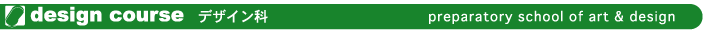 その先に続く創造性の確かなベースを築く 「美術系の大学、専門学校に進みたいけど、まだ具体的にどの分野を専攻するか迷ってる。」ひょっとしたら 「何かを表現したいけど、何をどうしていいのか悩んでる。」といった疑問を持っていてなかなか具体的には じめの一歩を踏み出せないでいる人でも「モノを創る仕事」を目指しているのであればとにかく早い時期から はじめてみることです。 基礎科ではあらゆるクリエイションの基本となる「モノを観る力、感じる力、理解す る力」を育成します。そして技術力を伴った「伝える力」を身に付ける事を目標にトレーニングを積み重ねてていきます。「モノを創る事が好き」、「何か絵を描く職業に就きたい」。おそらく全てのクリエイター、デ ザイナーはこのような気持ちからはじめの一歩を踏み出しています。これからその一歩を踏み出す人は、なるべく早い時期から具体的なトレーニングを始めた方が受験の対策としても有利です。 ○基礎デッサン ○平面構成 ○立体構成 |